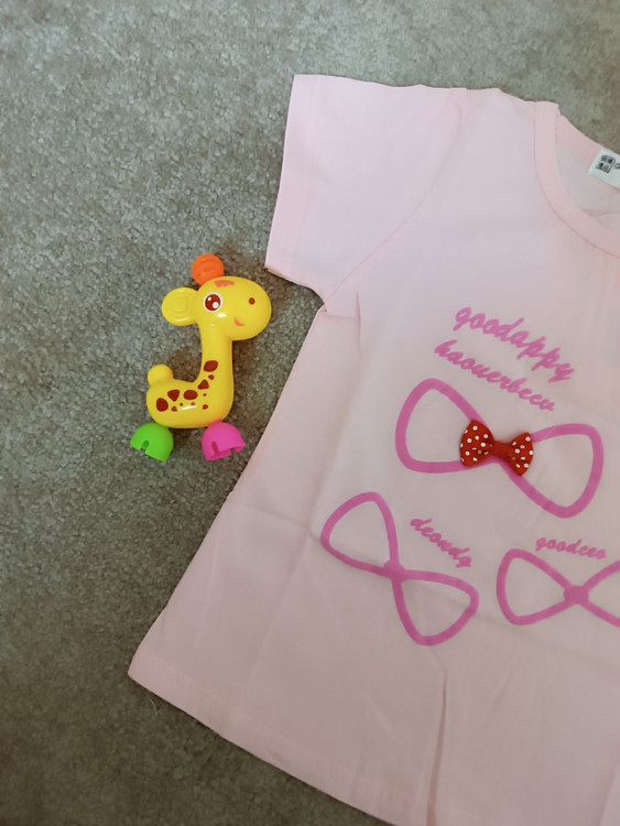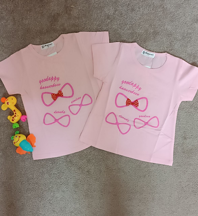 تیشرت تک دخترانه وارداتی صورتی جنس نخ پنبه لاکرادار