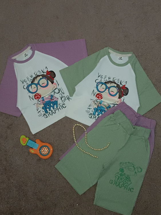 تیشرت شلوارک دختر آبنباتی برند پیکو‌مکس جنس سوپر نخ پنبه