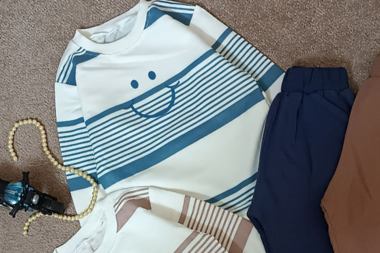 بلوز و شلوار بچگانه اسپرت طرح استیکر جنس دورس نخ پنبه