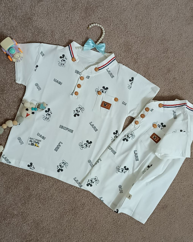 تیشرت پسرانه آستین کوتاه طرح میکی موس نخ پنبه لاکرادار